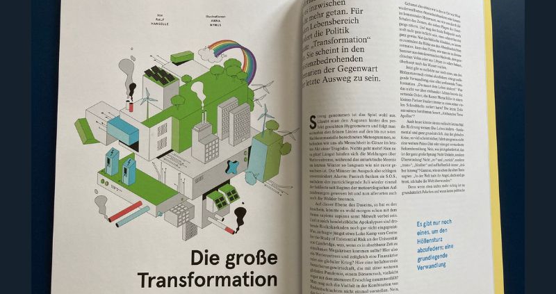 So scheint in den existenzbedrohenden Szenarien der Gegenwart Transformation der letzte wirkliche Ausweg zu sein. Nicht von ungefähr verspricht daher in diesen Tagen besonders die Politik, alles zu verwandeln und zu überformen, was in der jetzigen Situation noch möglich scheint: Als größte Industrie- und Exportwirtschaft Europas, so heißt es etwa im 2021 geschlossenen Koalitionsvertrag der Ampelregierung, stünden wir in den 2020er Jahren vor tiefgreifenden Transformationsprozessen – „von der Dekarbonisierung zur Einhaltung des 1,5-Grad-Pfads über die digitale Transformation bis hin zum demografischen Wandel“.